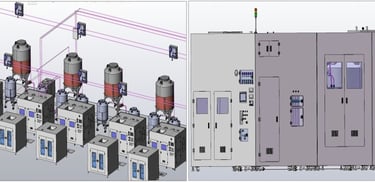 This system is designed to dilute single components like slurry, DHF, TMAH, DKOH, SC-1, SC-2, and SPM, and blend multiple components. It relies on mass flow meters, titrators, and concentration meters to precisely measure and control the blending process, ensuring a stable supply based on system requirements and fluid properties."