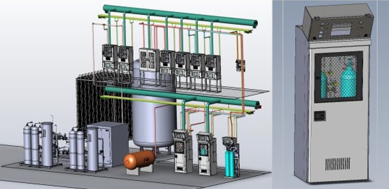 Multi-Point Delivery: When multiple gas outlets are needed, the system employs VMB (for specialty gases) or VMP (for inert gases) for gas diversion.